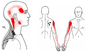 Kopf-und Nackenschmerzen werden somit nicht selten durch Triggerpunkte im Trapezmuskel ausgelöst.
